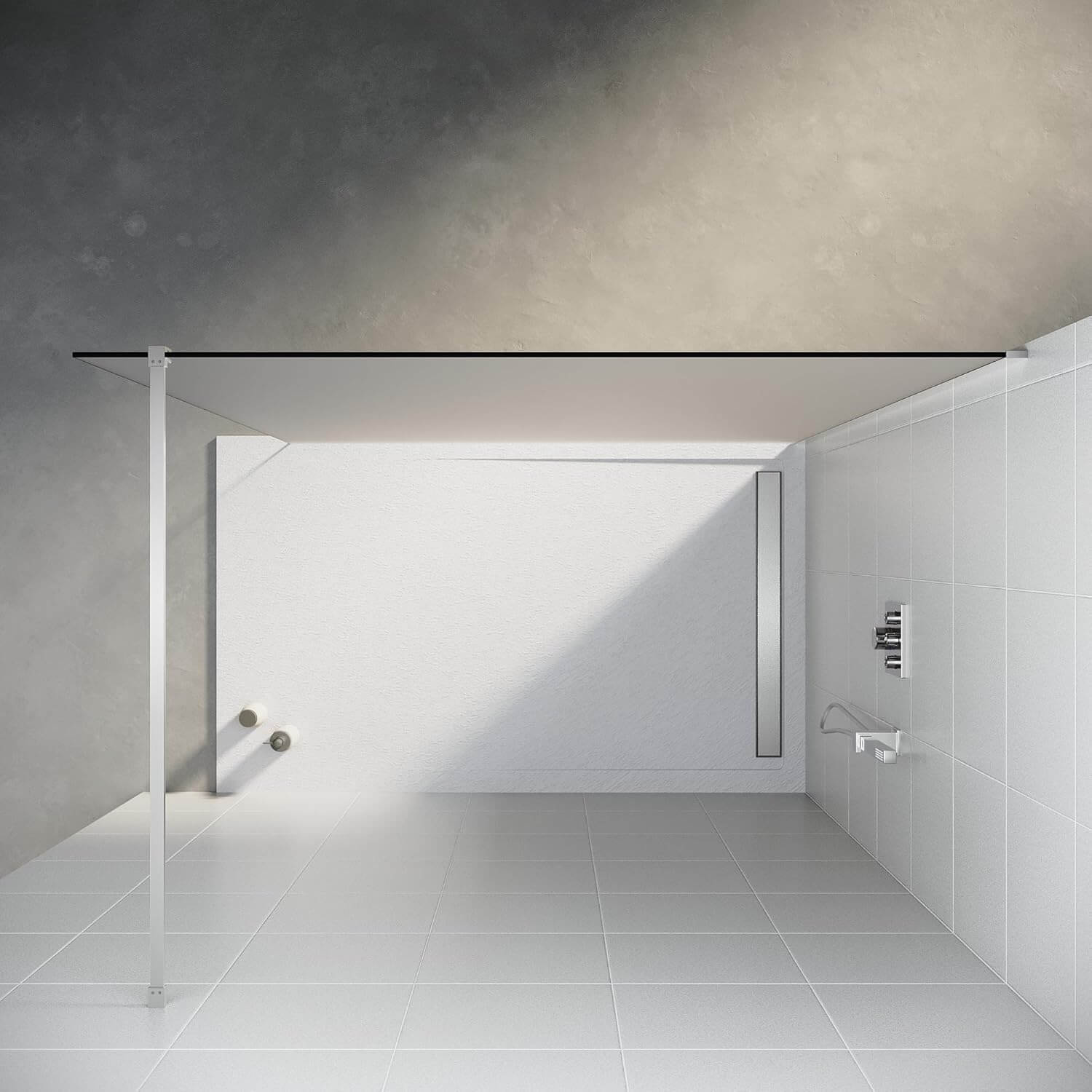 - La mampara de ducha se pliega completamente en la pared y ahorra espacio cuando está cerrada.