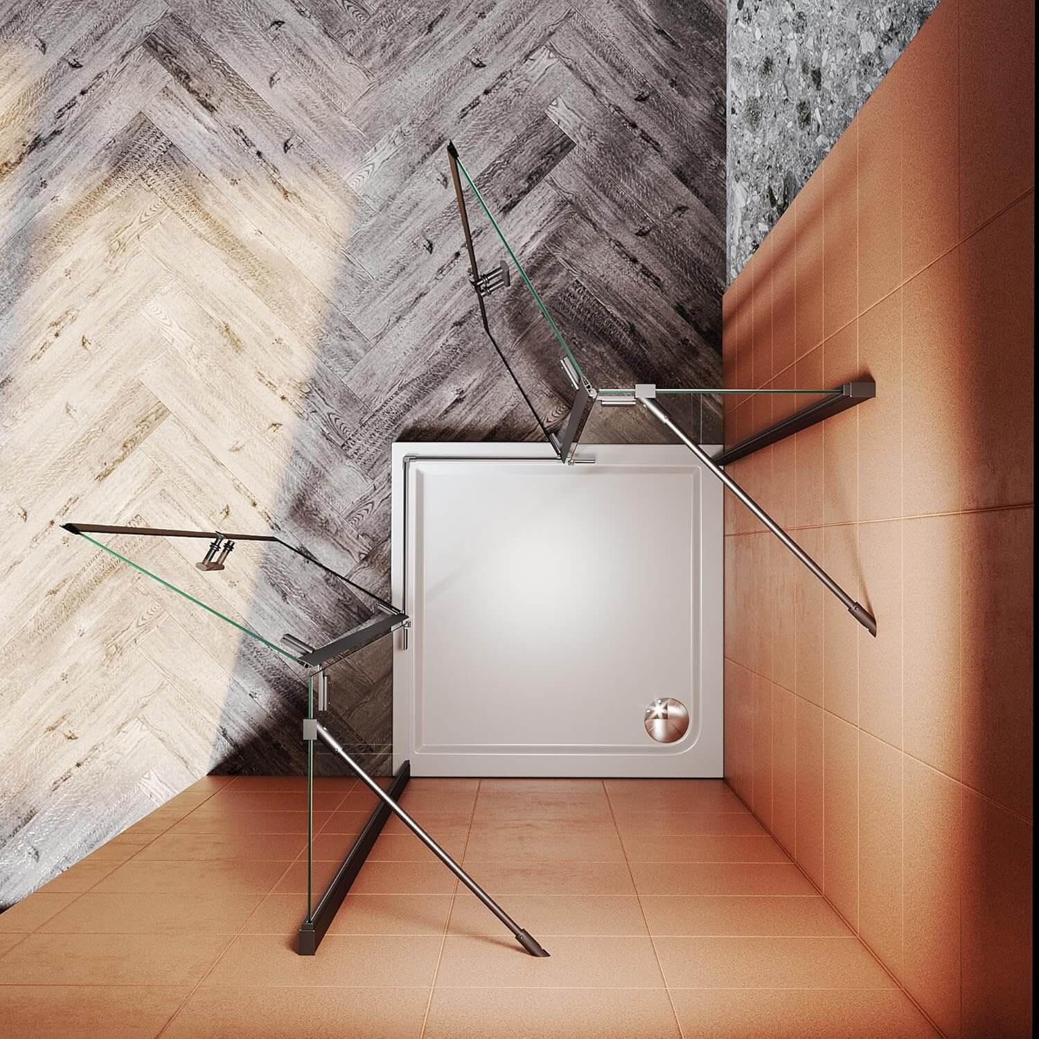 Sonni Cabina de ducha de color negro, 195 cm de altura, con puertas de péndulo de 6 mm, cristal Nano Esg, puerta con bisagras, sin marco