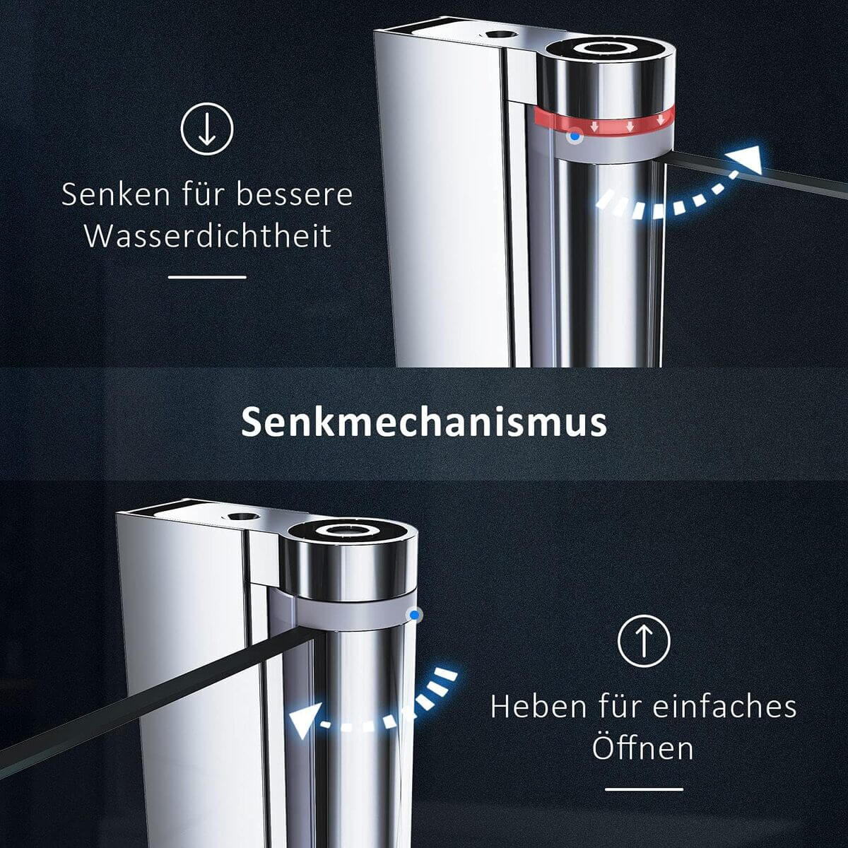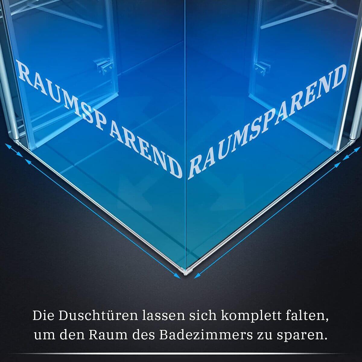 - La mampara de ducha se pliega completamente en la pared y ahorra espacio cuando está cerrada.