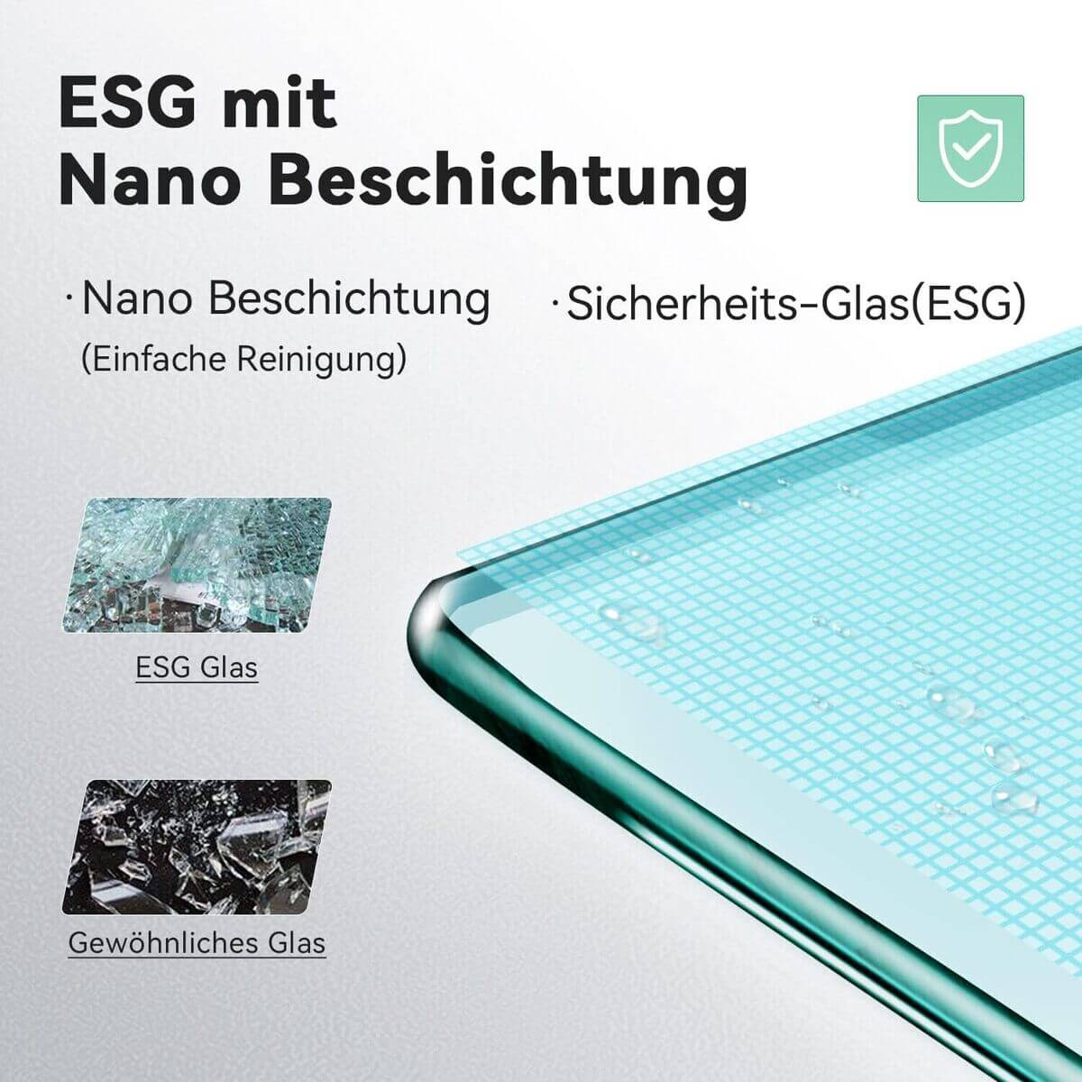 - Nano recubrimiento: evitar la escala y la acumulación de suciedad. Vidrio de seguridad (ESG) 6 mm según EN 12150.