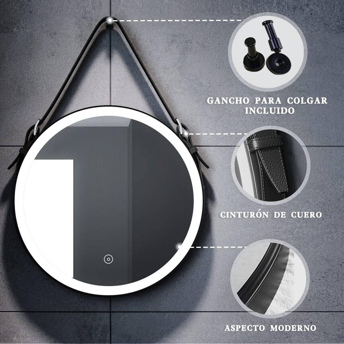 - Correa ajustable de 6 niveles, un cinturón de cuero ajustable le da al espejo redondo un aspecto moderno.