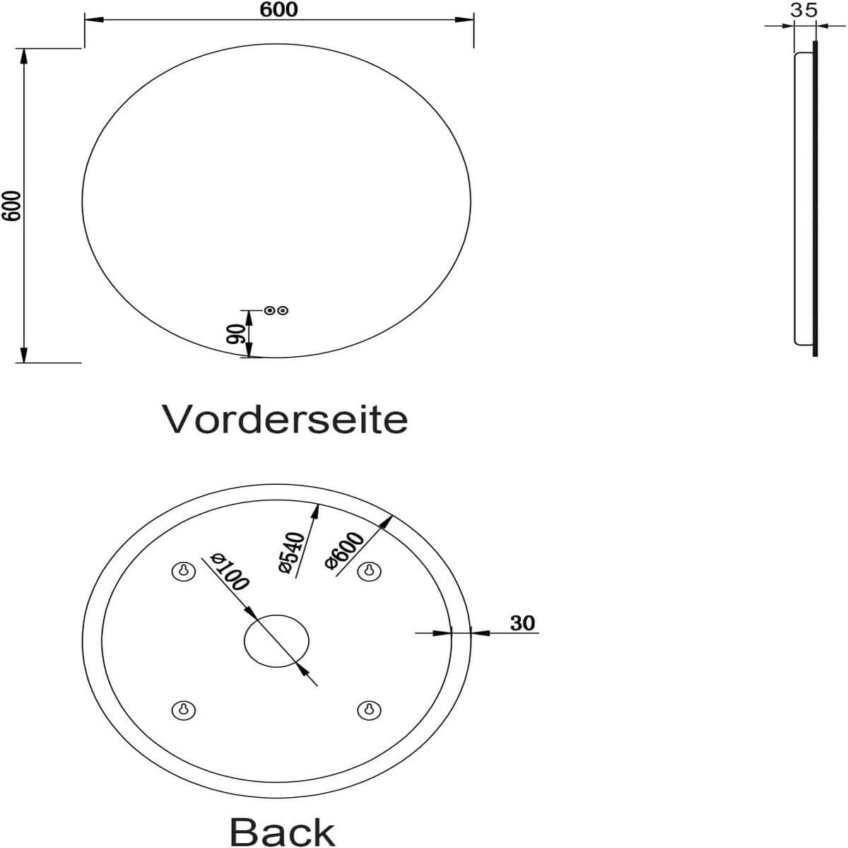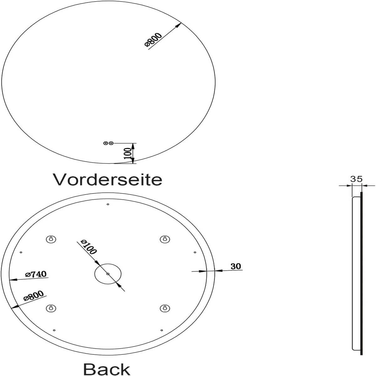 Tamaño: diámetro de 80 cm, Profundidad total: 3,5 cm, espejo sin cobre ni plomo, con grosor 4mm. El espejo lo protejemos con embalaje reforzado. Si tiene cualquier pregunta, no dude en comunicar con nosotros y le solucionamos enseguida.