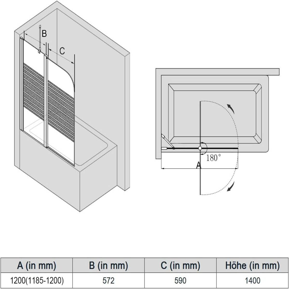 Tamaño de mampara de bañera: 120 cm (ancho) x 140 cm (alto), con rango de ajuste 5 mm.