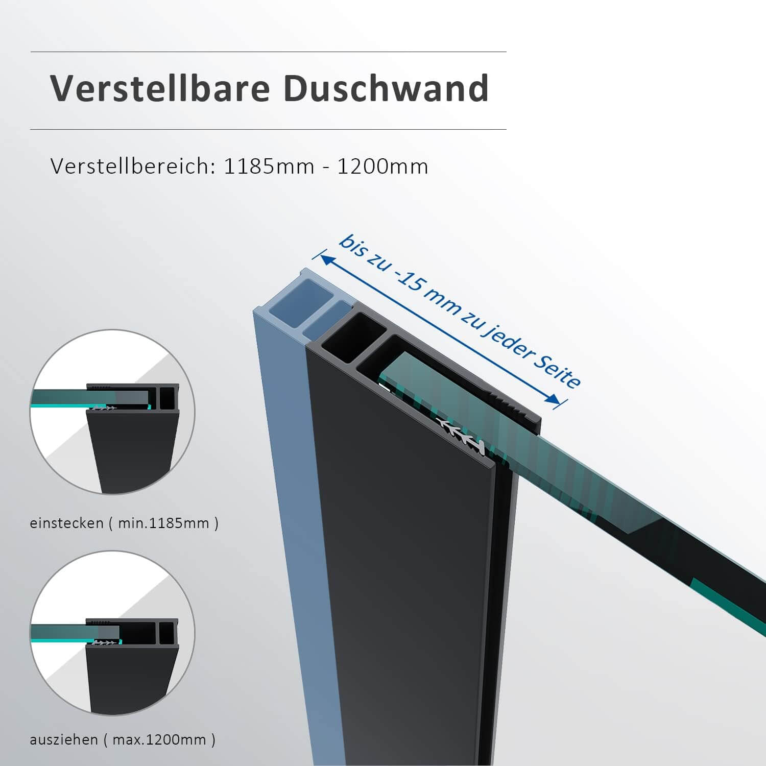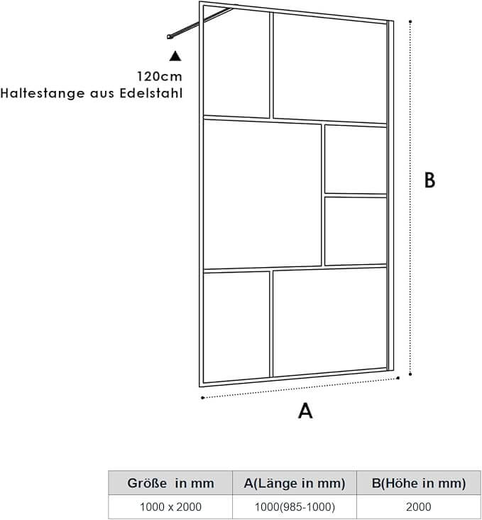 - Tamaño: 100/120 x 200 cm (Ancho) x (Altura) con un rango de ajuste: -15 mm, montaje a nivel del suelo, se puede montar en ambos lados