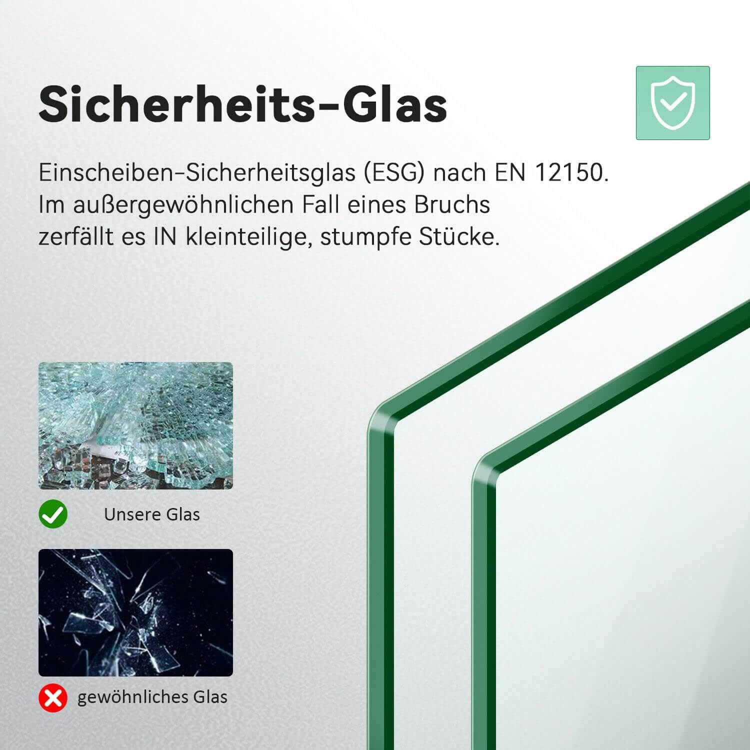 - El cristal de seguridad reforzado de 8 mm con nanorrecubrimiento protege contra la cal y el polvo, permite una fácil limpieza.