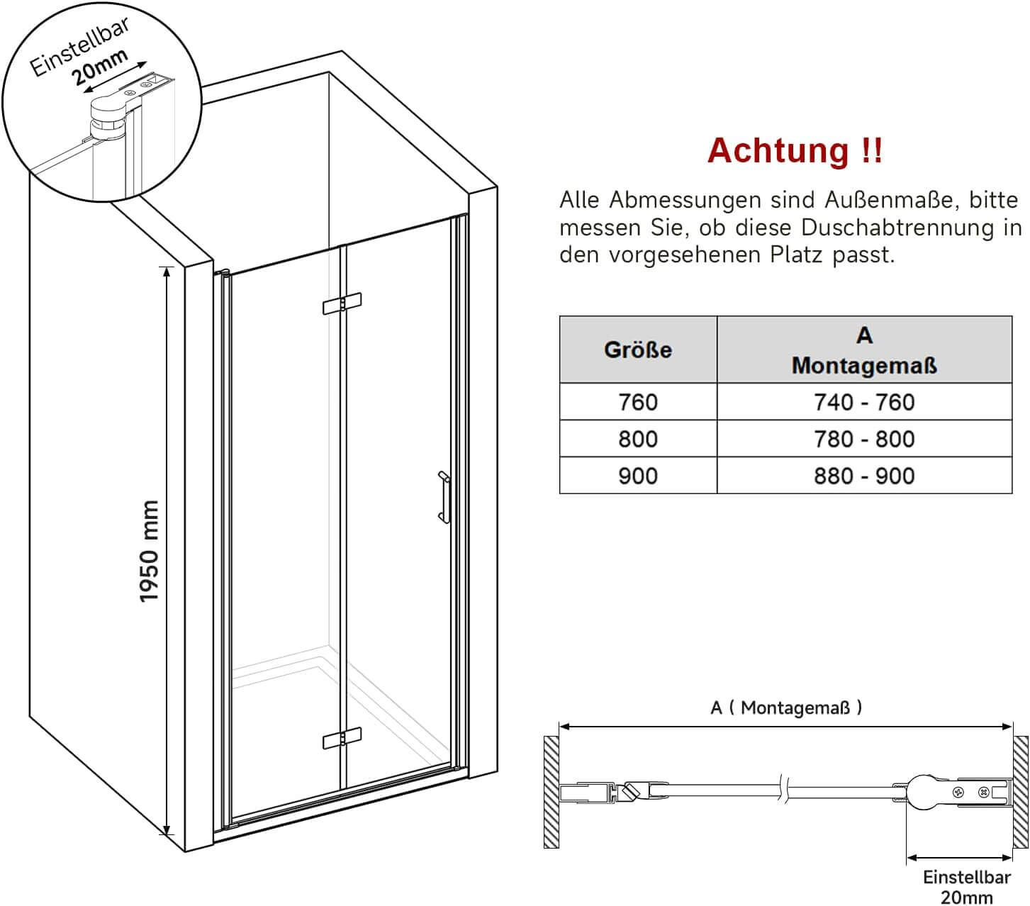 - 【El diseño】Mamparas de ducha con puerta plegable se puede plegar 180 grados por dentro y por fuera para ahorrar espacio, que le ofrece una gran abertura y es ideal para entrar en la cabina de ducha con mayor facilidad y elegancia.