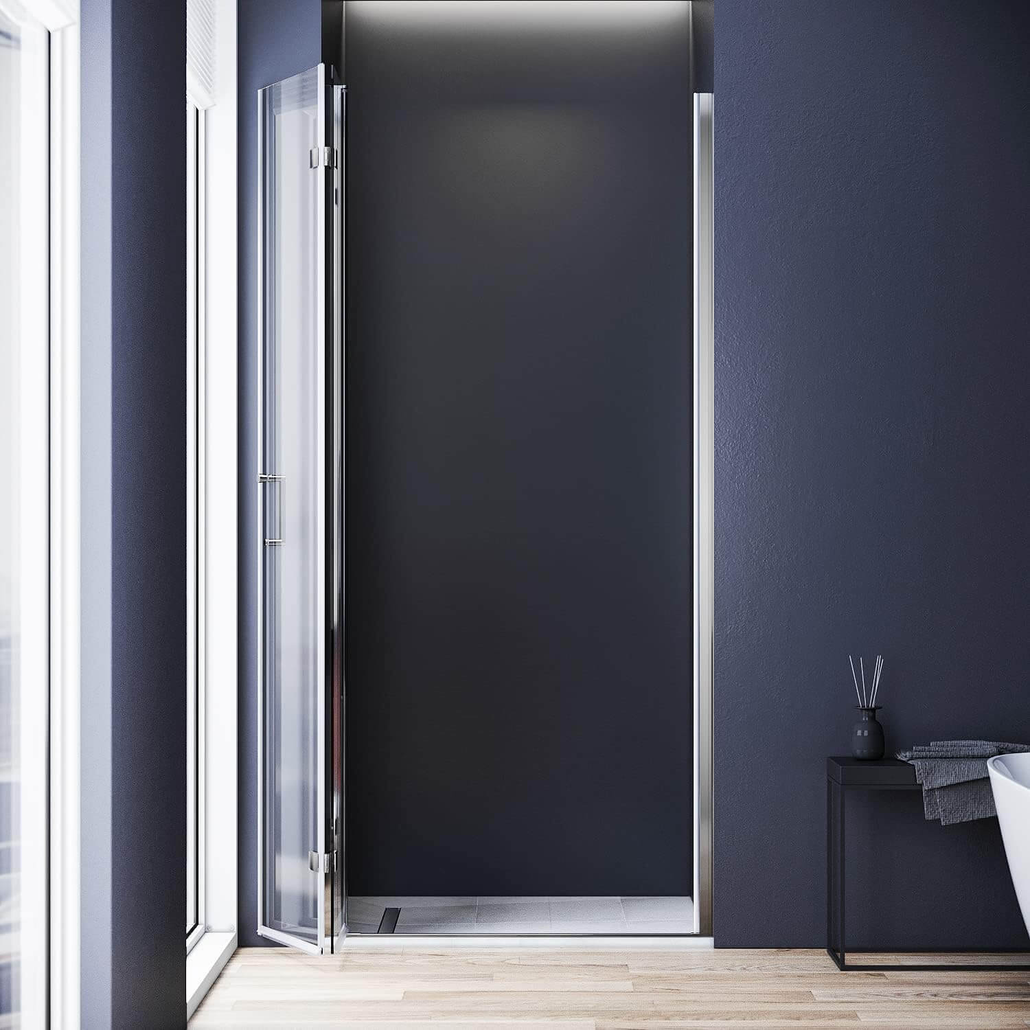 - 【Estilo moderno】El diseño de las mamparas de ducha se inspira en el estilo moderno. La puerta sin marco muestra elegancia en su cuarto de baño, también es una decoración ideal.