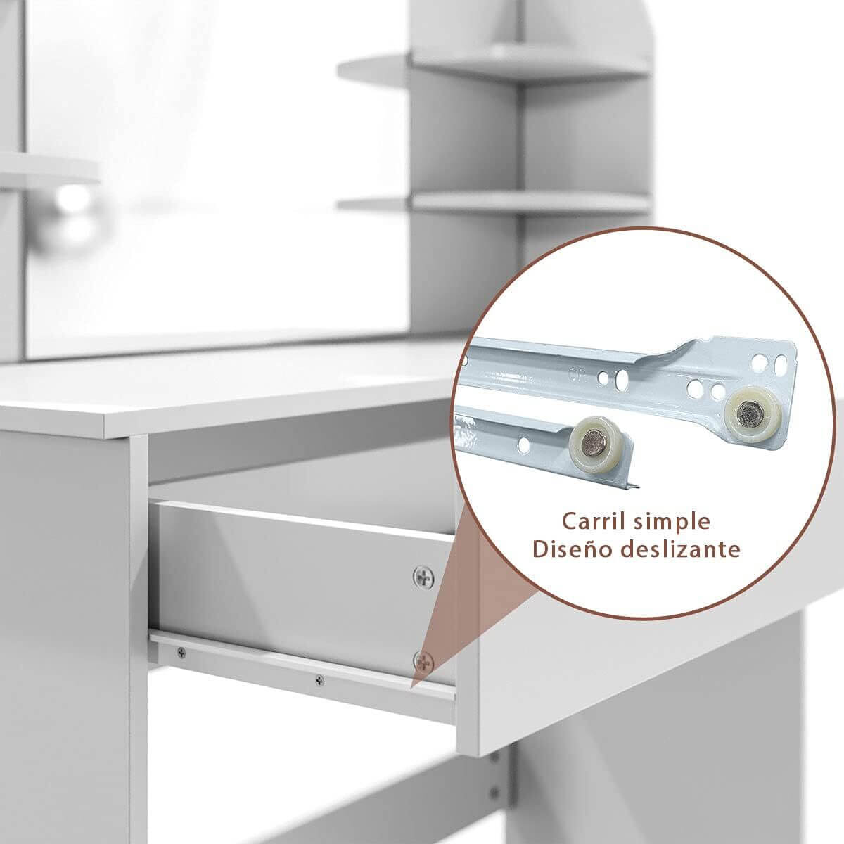 - 【COMODIDAD】: El taburete antideslizante le ofrece una experiencia de asiento segura. Mesa de maquillaje con espejo de alta resolución, superficie limpia y resbaladiza.