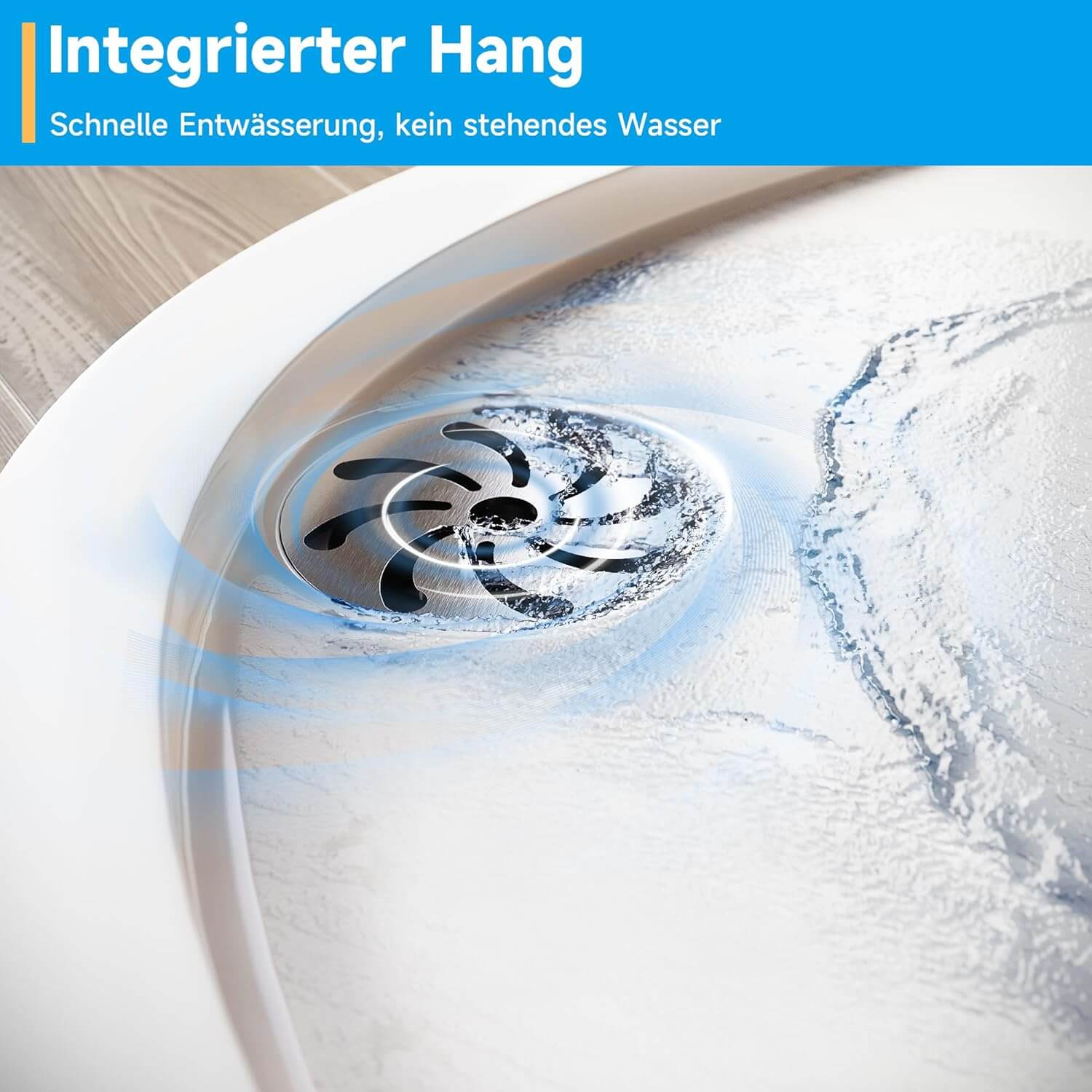 - Inclinación integrada: el desagüe está en el centro de la elipse. El agua fluye rápidamente, no queda agua en el plato de ducha.