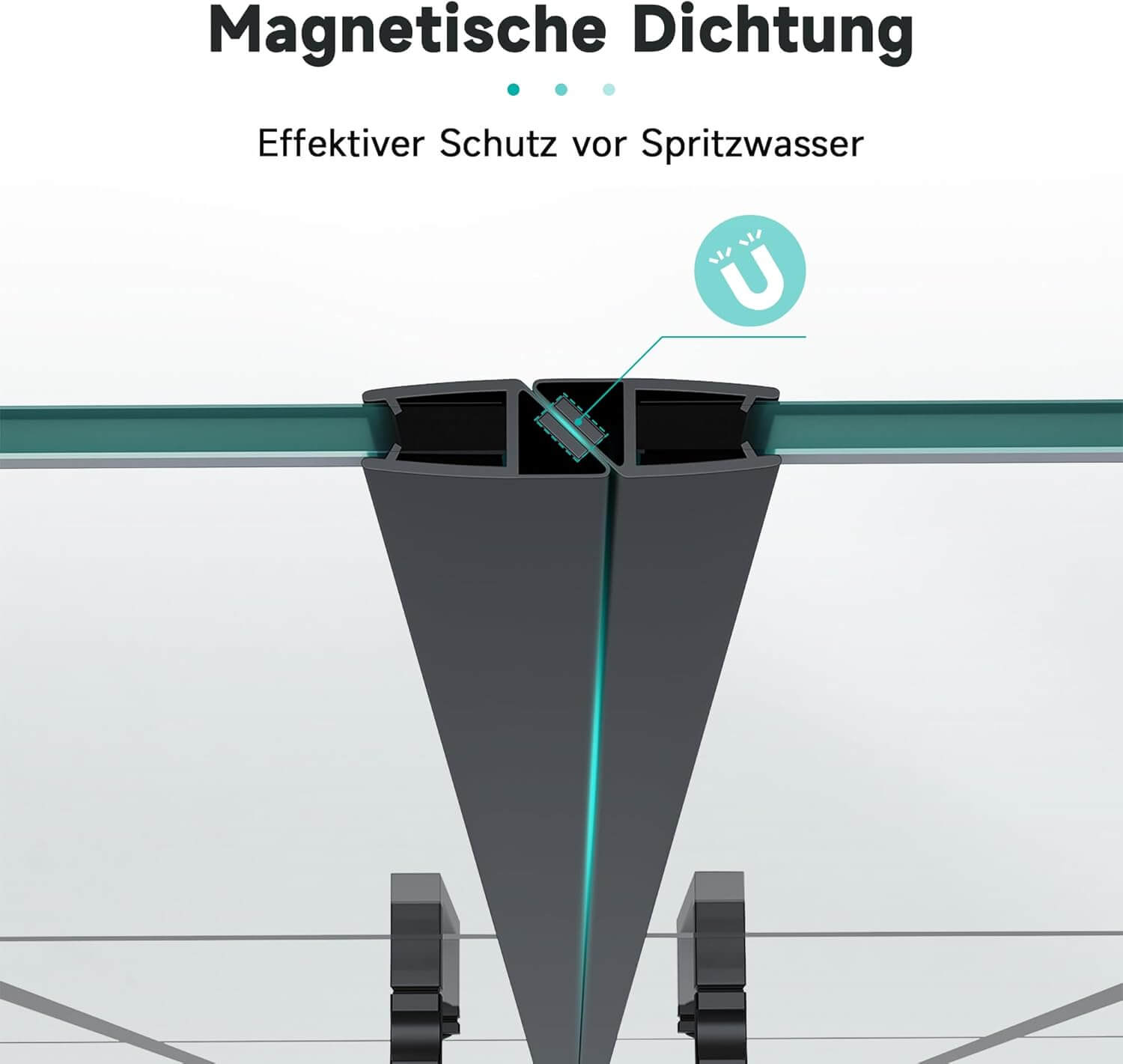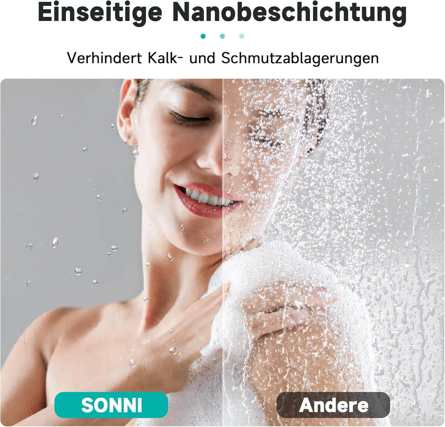 Fácil limpieza: la cabina de ducha está hecha de vidrio templado de 5 mm y está equipada con un nanorrevestimiento unilateral que repele eficazmente la cal y la suciedad, lo que facilita la limpieza y prolonga la vida útil.
