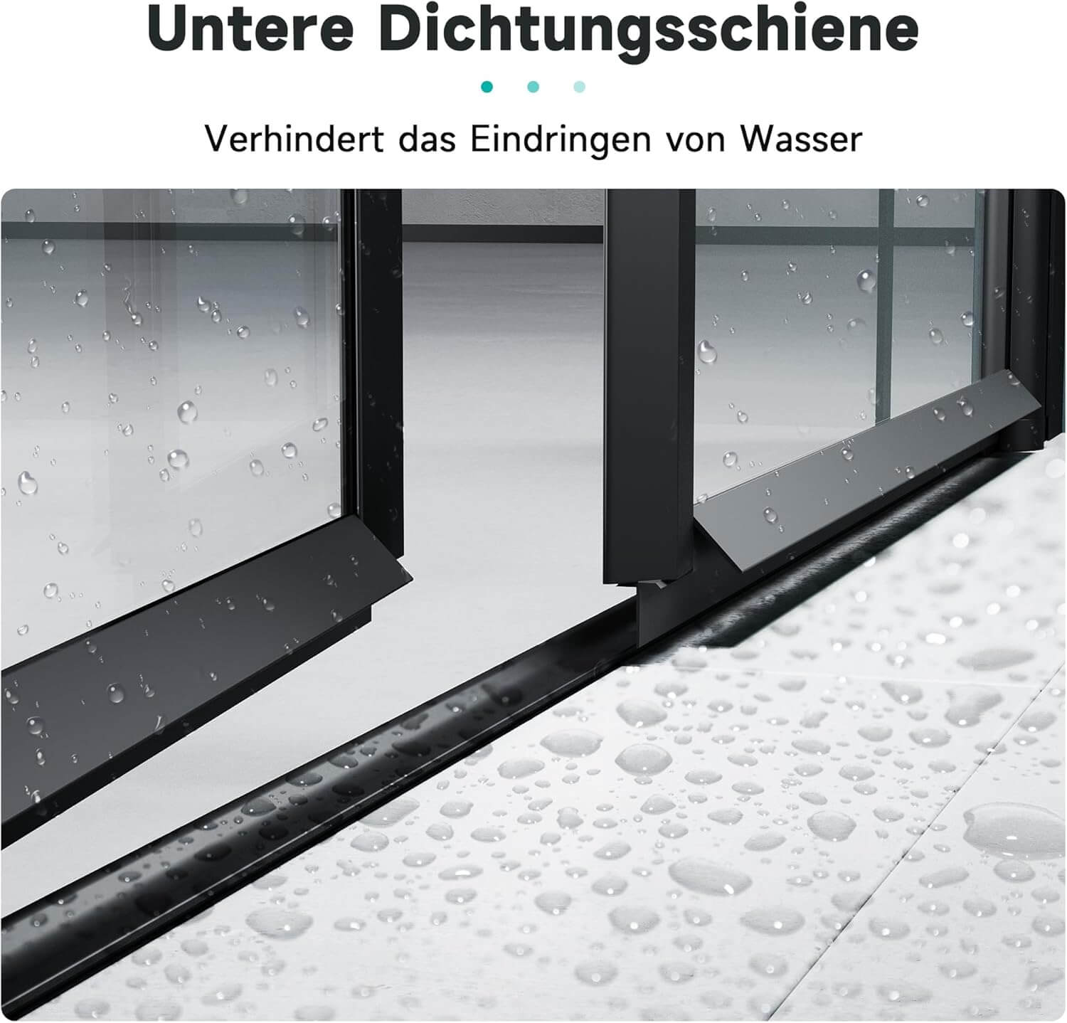 - Resistente y duradera: la puerta de ducha utiliza una estructura de aluminio doble que la hace extremadamente estable y duradera. También ha pasado una prueba de pulverización de sal de 72 horas y, por lo tanto, es ideal para ambientes húmedos.