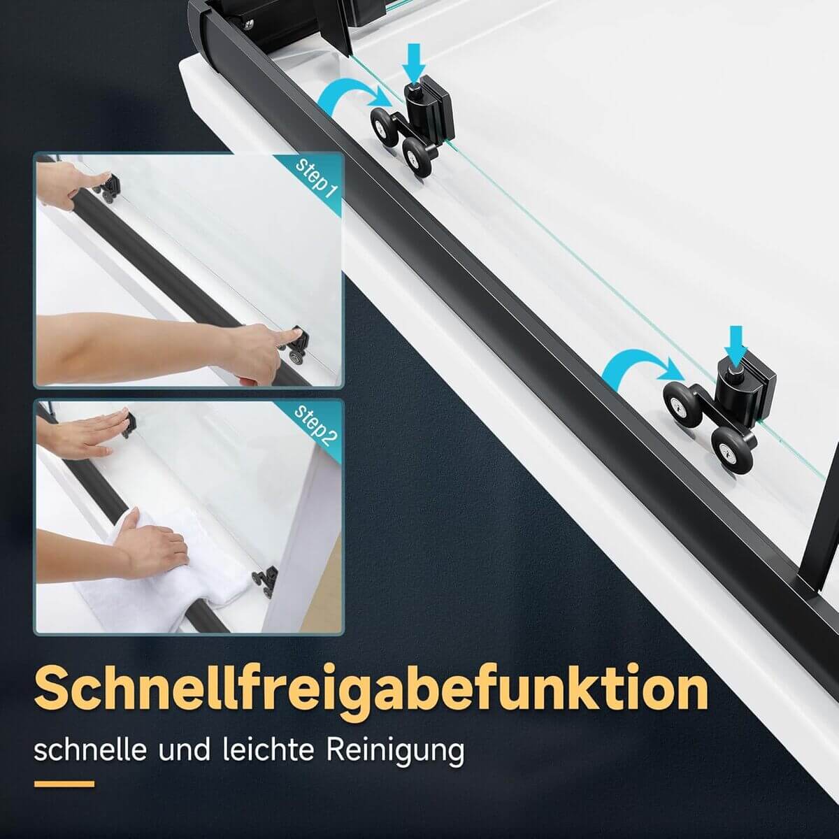 SONNI Puerta de ducha de cristal de seguridad, puerta corredera, cabina de ducha, color negro